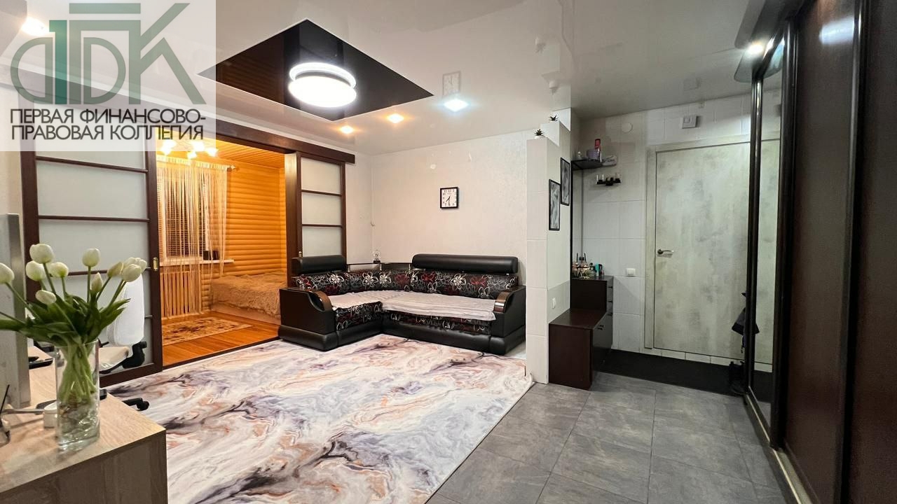 Для новых владельцев остаются вместительные шкафы-купе, диван в гостиной, а также кухонный гарнитур и барная стойка!