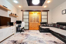 В квартире сделан современный качественный ремонт, установлены пластиковые окна, натяжные потолки, теплые полы.