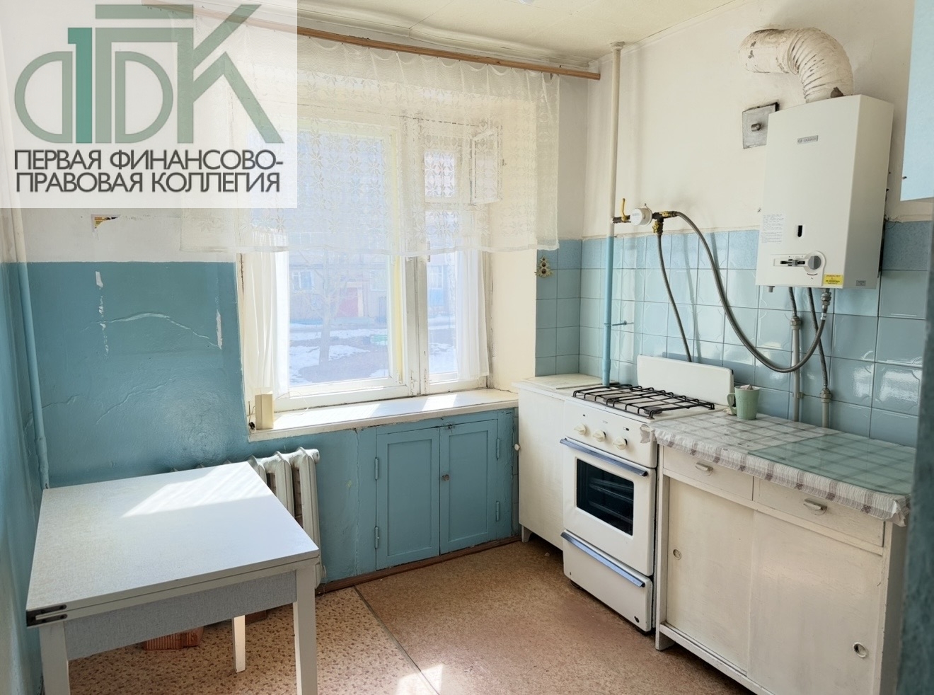 В квартире просторная кухня, установлены все счетчики.